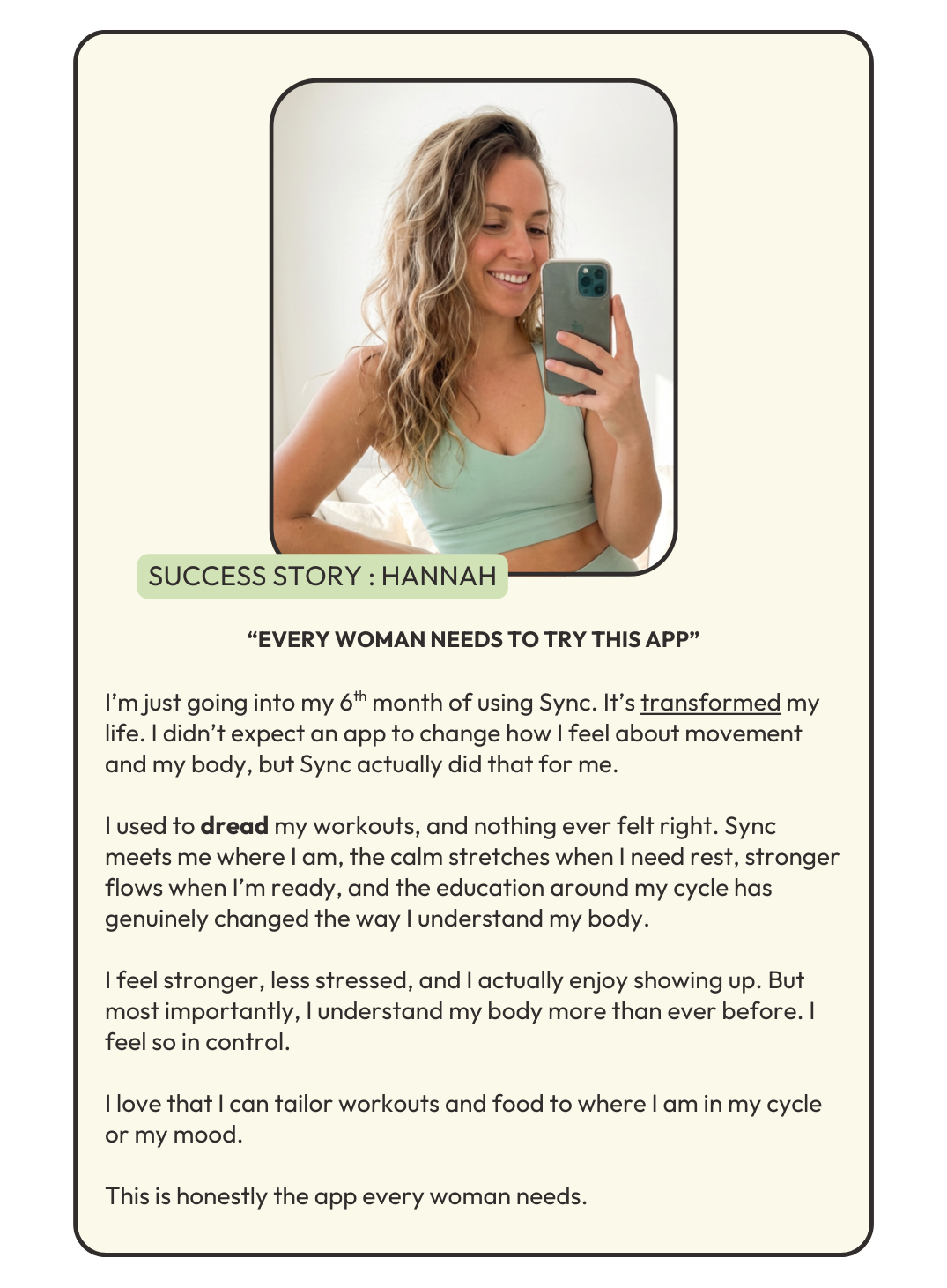 Sync with Georgia is used by thousands of women worldwide who are looking for a more supportive approach to fitness that works with their body rather than against it.